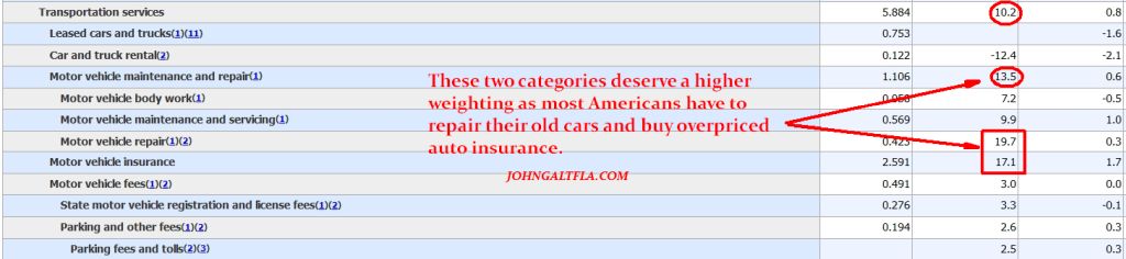 To finish, here are some selected categories that are not seasonally adjusted (my preferred reference point due to hedonic games) where the necessities the middle to lower class can not live without but are paying more for (From BLS release, June 13, 2023 – Table 2. Consumer Price Index for All Urban Consumers (CPI-U): U.S. city average, by detailed expenditure category, May 2023):