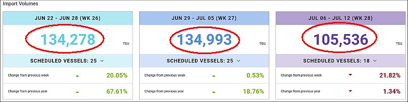 That schedule will change by next Monday, probably normalizing to higher levels above 120,000 as ships are able to unload in Mexico and move faster to the Los Angeles or Long Beach ports.