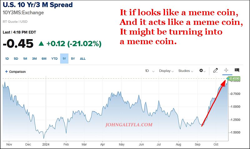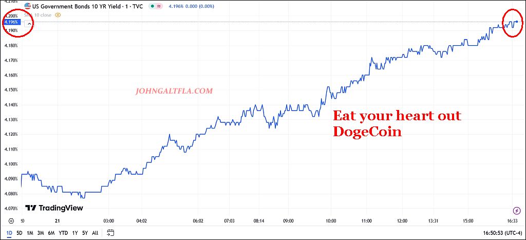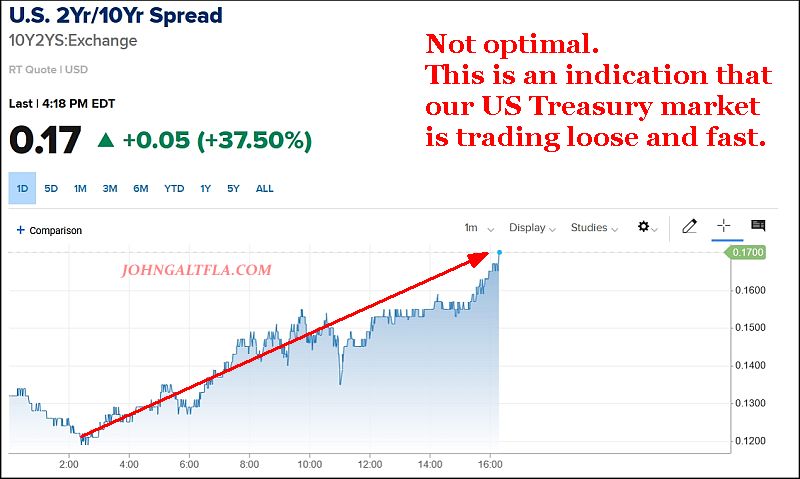 Other than badly named cryptocurrencies that trade wide and loose, seeing a 37.50% moves in bond spreads is not what I would call a healthy sign for a sovereign credit as the US 10 year treasury bond sold off hard today: