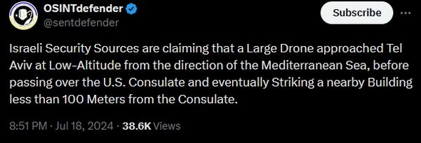 It appears to be a drone attack, possibly from Hezbollah in Lebanon: