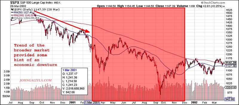 If one looked at the irregular market activity between the summer of 2000 through January of 2001, no way a recession appears to be on the horizon. Yet there it is.