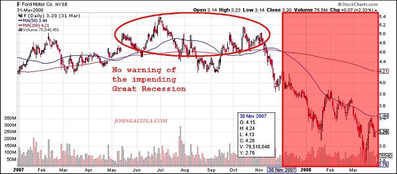 Again, no warning, not hint, nothing. This is why using individual stock performance, especially those leading the bubble may not be a good measurement of economic health.