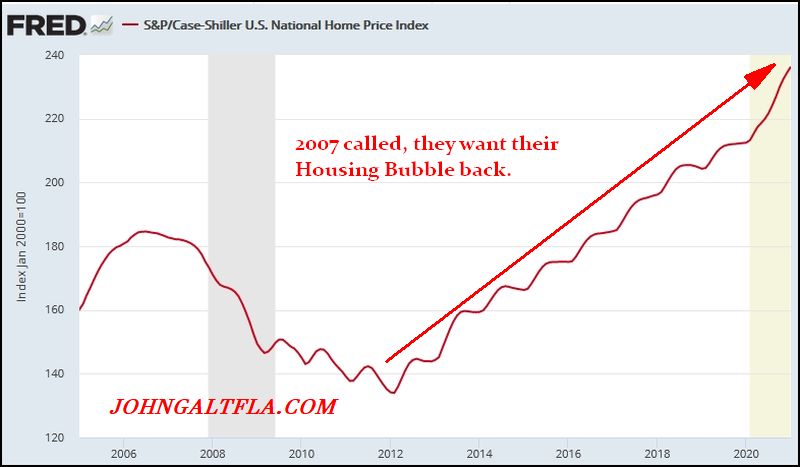 Meanwhile, housing prices are going insane if one reviews the Case-Shiller index: