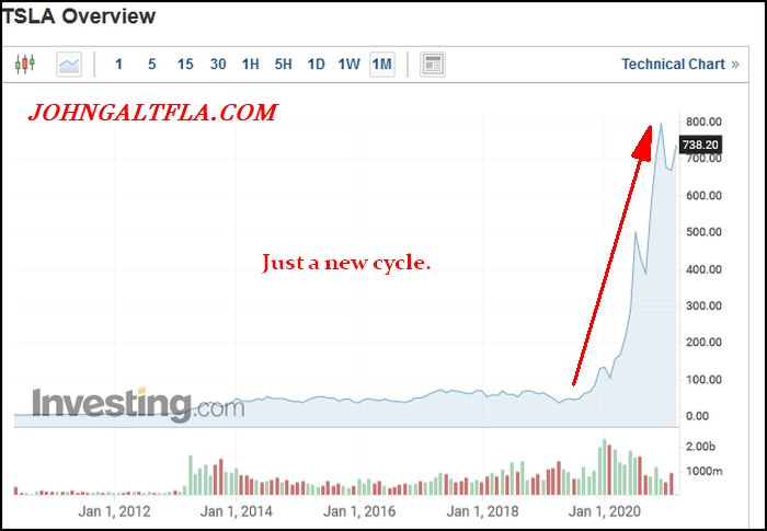 Let’s check in on the “green” revolution of electric motor vehicles and see if the parabolic moves are going to impact the price of the Green New Deal: