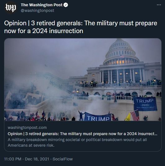 As we approach the first anniversary of the deadly insurrection at the U.S. Capitol, we — all of us former senior military officials — are increasingly concerned about the aftermath of the 2024 presidential election and the potential for lethal chaos inside our military, which would put all Americans at severe risk.