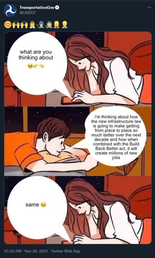 This was posted by the United States Department of Transportation on Twitter yesterday. Instead of a link which can be erased, I took the liberty of a screen shot so it will demonstrate that the U.S. government is now indeed no different than the old Soviet Union or Communist Chinese.
