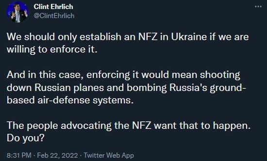 And yes, there are American idiots wanting to establish NFZ’s (No Fly Zones) and risk engaging Russian Air Force planes over Ukraine. Dear God we’ve raised a generation of blithering idiots.