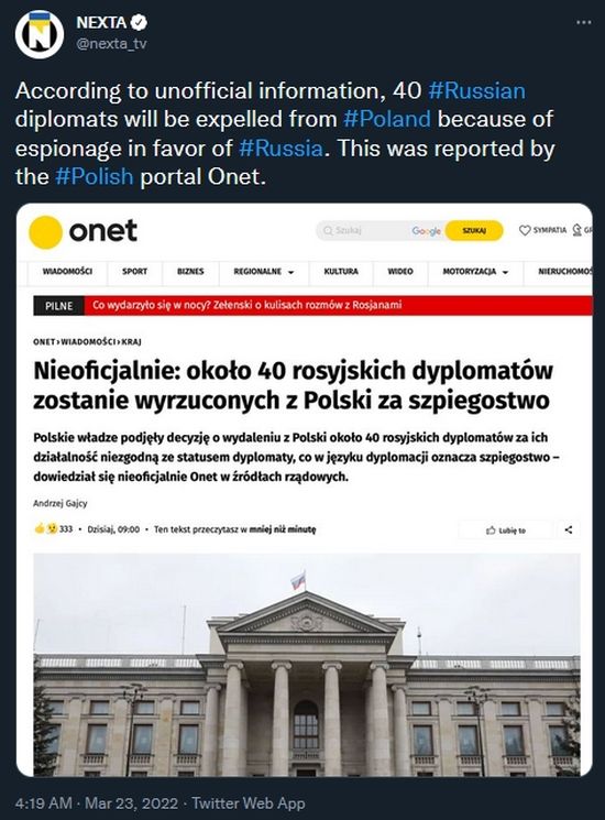 This might explain part of the alleged document cook out at the Russian embassy in Warsaw last night: