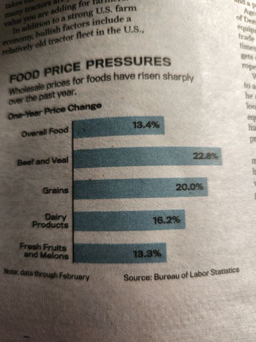 For those who are economically ignorant, which is about 90% of the US population, I took a snap shot of this chart from Barron’s in early March to highlight the price inflation in food America has been experiencing: