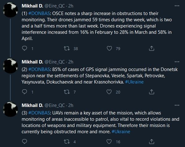 As the information portrays, the blinding of Ukrainian and third party reconnaissance to the movements of Russian and Russian supported forces in the Donbass is well under way, hence the war could actually begin sooner if the Russian government feels it is advantageous.